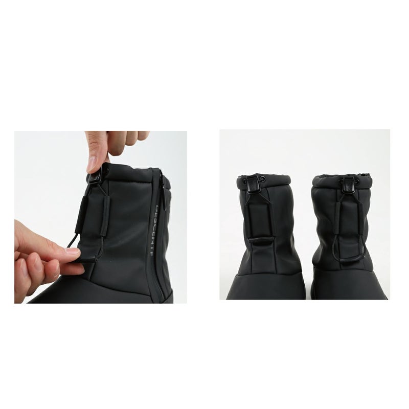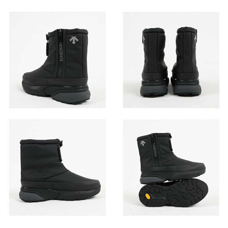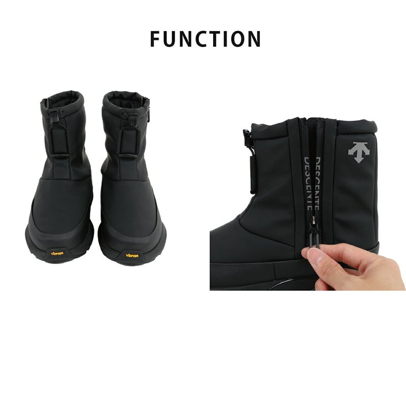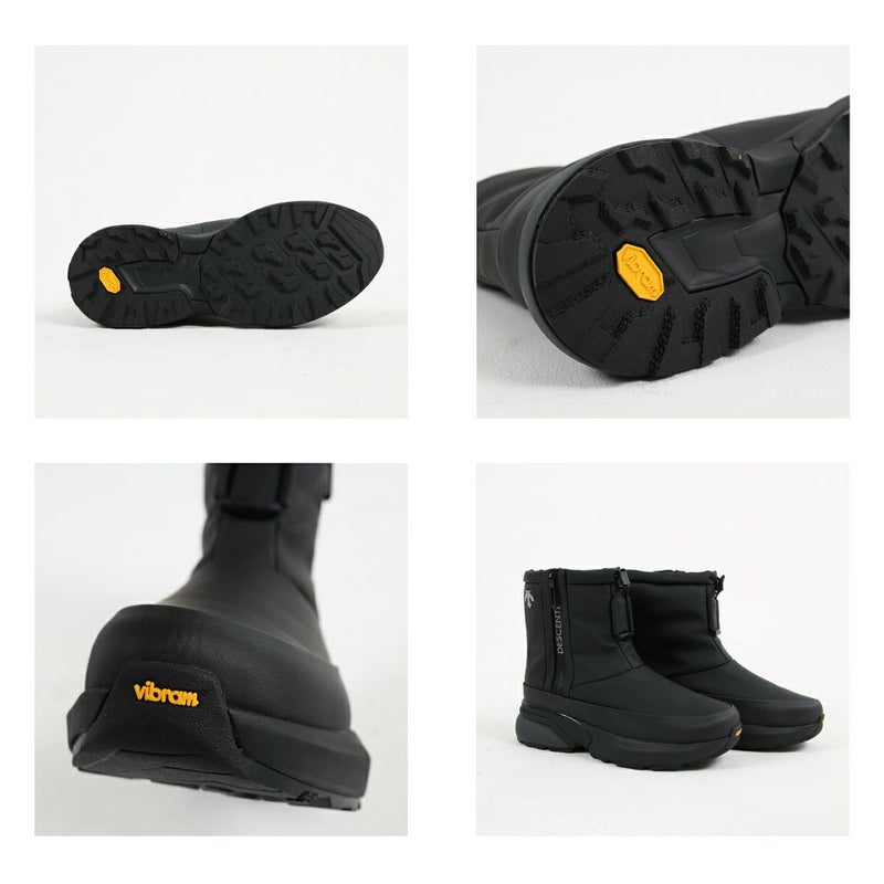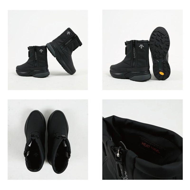 防滑性を高めるため、イタリアのヴィブラム社と協業し、オリジナルのアウトソールを作製。乾いた路面、濡れた路面を問わず、グリップ力を発揮し、耐久性も高い「ヴィブラム メガグリップ」と靴底の凹凸部分であるラグには、しっかり踏みしめる力を高める「ヴィブラム トラクションラグ」を採用。雪や雨などのシーンでの使用を想定した防水設計。また、防寒性を高めるため、デサントの独自機能であるヒートナビをライニングに搭載し、インソール表面にも蓄熱素材のベルセラを搭載。アッパー材はデサントがオリジナルで開発をした、マイクロファイバーベースの人工皮革を採用し、足馴染みと耐久性を考慮。