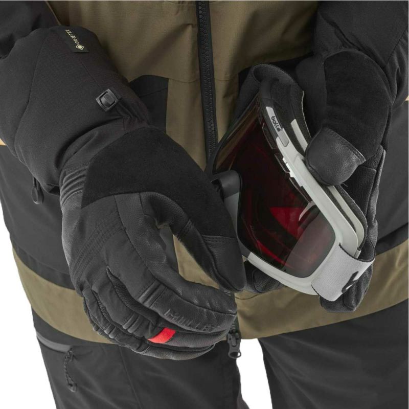 グリップ力に優れたソフトレザーを手のひらに備えた中綿入りGORE-TEXグローブ。より操作性と汎用性に優れた五本指タイプで中綿には100gのプリマロフト(R)ゴールド クロスコアを使用し、多様なスノーシーンに対応します。