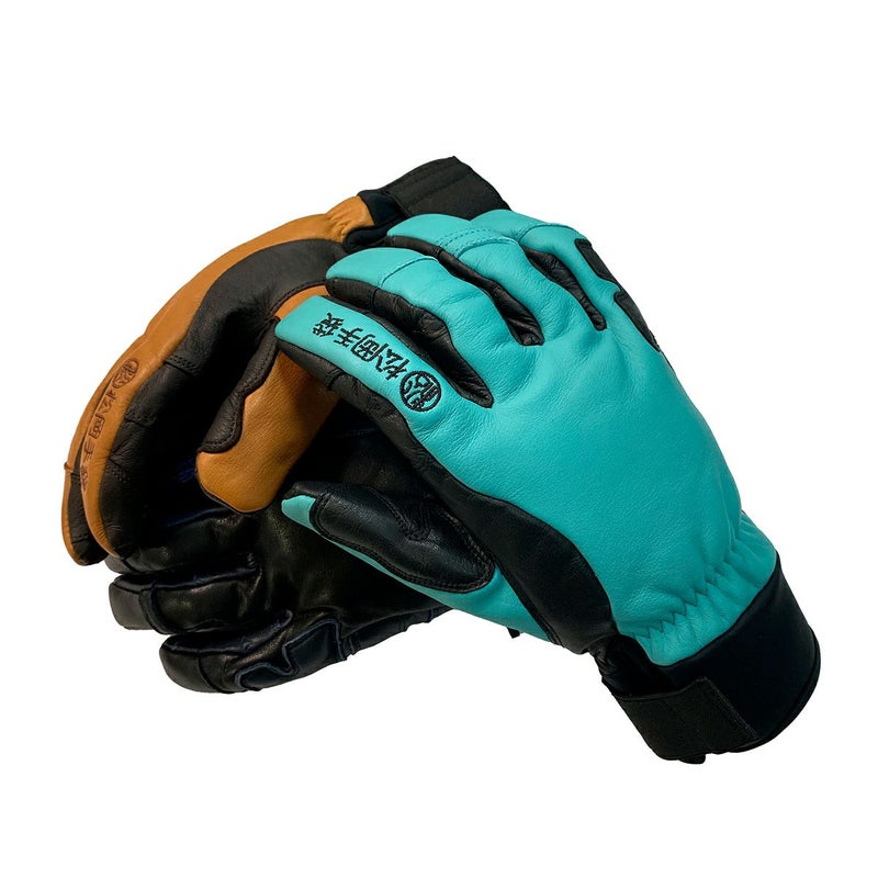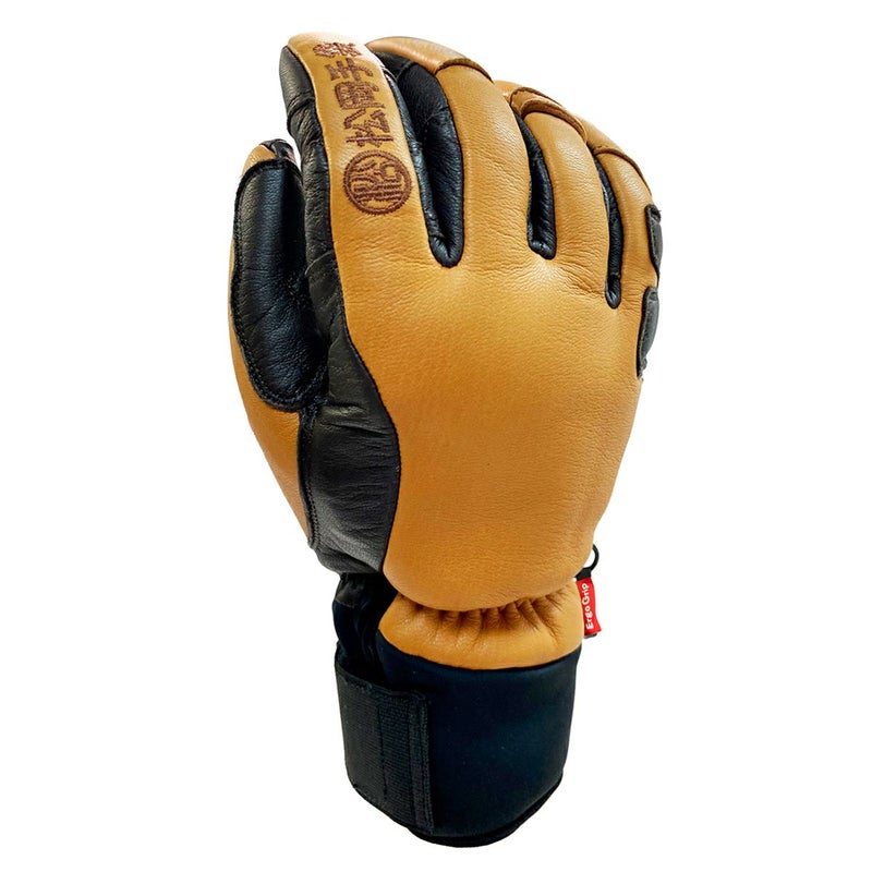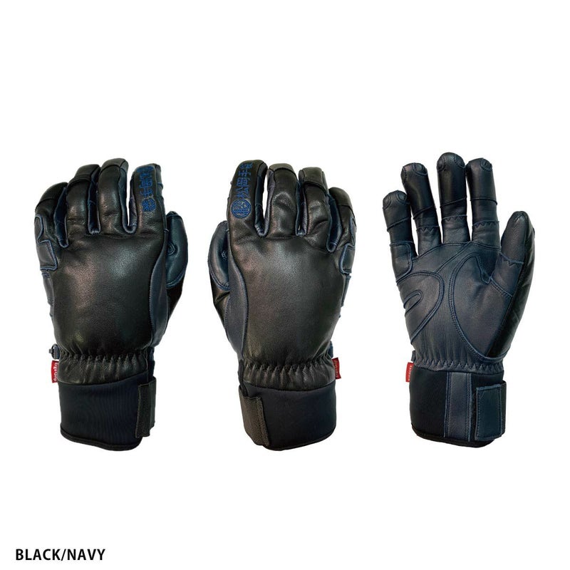 高級感あふれる牛革、やぎ革仕様。握りやすく疲れにくいエルゴグリップ立体型採用。5フィンガーで、操作性を追求。ストック保持部はアテ革で補強。グローブ内をドライに保つオリジナル透湿防水フィルムを内蔵し、軽くて暖かい高機能中綿を使用。袖口はエラスティックバンドで調節可能。薬指にカラビナループ装着。ハンドストラップ、メッシュバック、お手入れに便利なミニブラシ標準装備。