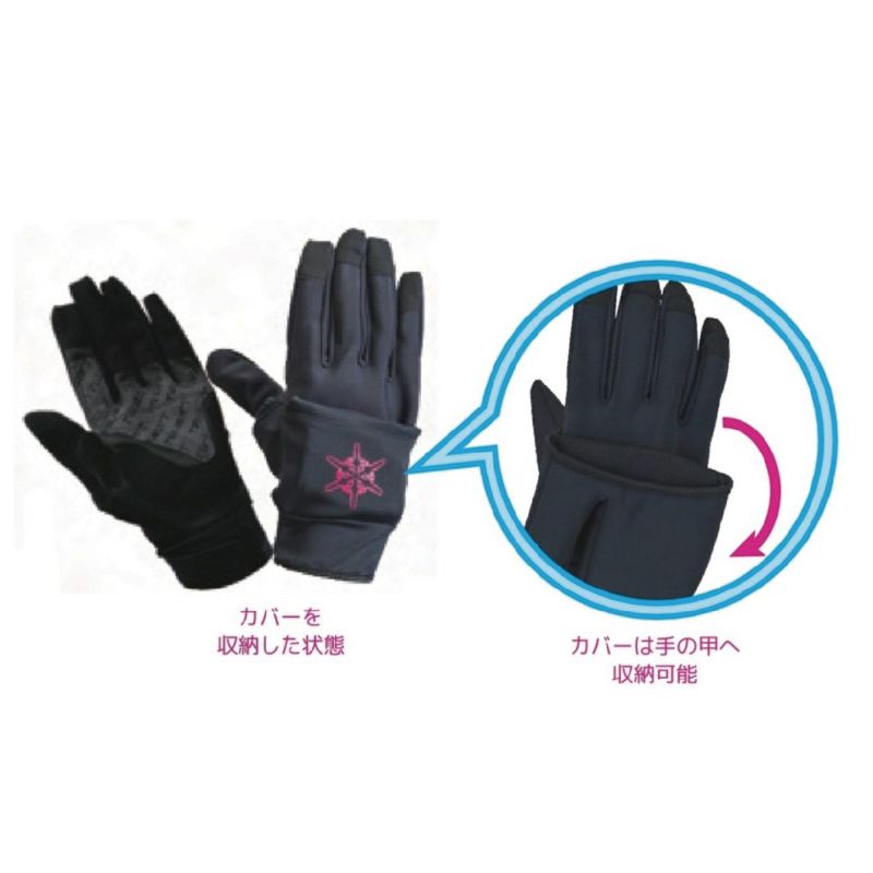 オーバー3フィンガー。カバーを外せば5本指。天候に合わせて調節できます。カバーを外した人差し指は、スマートフォン対応です。カバーは本体に付いており、無くさず、邪魔にならず、手の甲に収納可能。カバーには滑り止めをつけました。カバーをしても外しても滑らず、グリップ感も抜群です。薄手ですが、カバーをすると、予想以上に温かく快適です。スキー・スノーボードシーン以外にも、カメラ・ビデオ撮影などプロ仕様のグローブです。