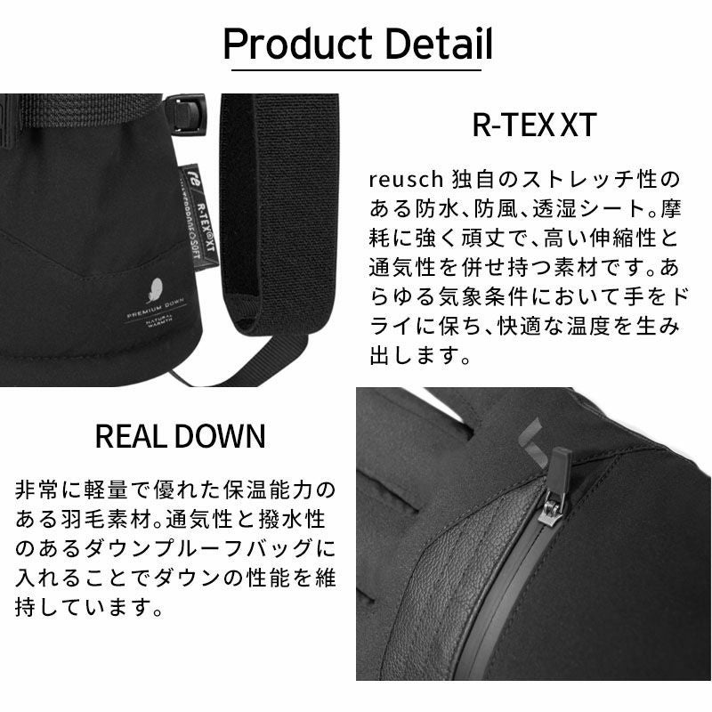 ヒートキャプチャーテクノロジーとヒーティングポケットを備えたとても暖かいプレミアムダウングローブです。防水性シートも採用したソフトで快適なロングカフスタイルです。