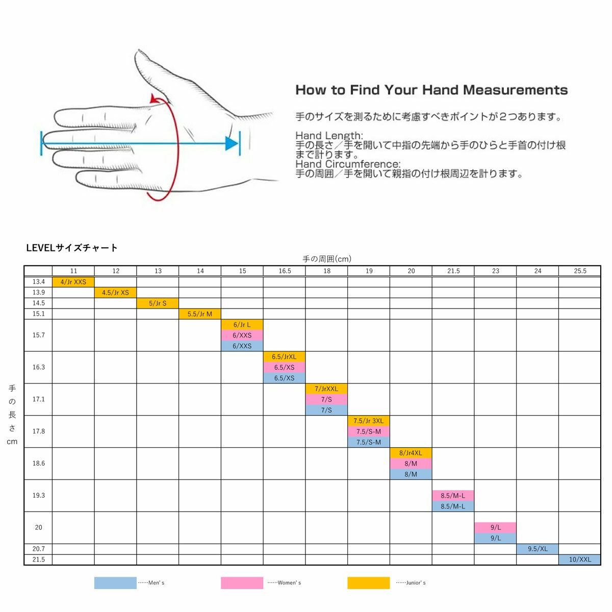 6.5/XS、7/S、7.5/SM、8/L、8.5ML、9/L、9.5/XL、10/XXL