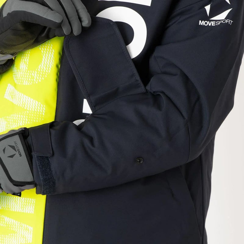 デザインポイントは全胸に安心感のあるMOVEロゴを配置しているジャケット。