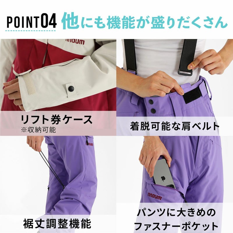 スノーウェア 女性用 防寒 保温 スノボ スノーボード 大きい 小さい サイズ NN22FOT42W / NN22FOB42W / NN23BFTP42W スキー ウェア セット スキーウェア レディース スノーウェア スノーボードウェア スノボウェア スキーウエア スノボー 女性用 上下セット 耐水圧20000ml NNOUM ノアム 防寒 保温 ジュニア 裾丈調節 4wayストレッチ ジャケット パンツ おしゃれ