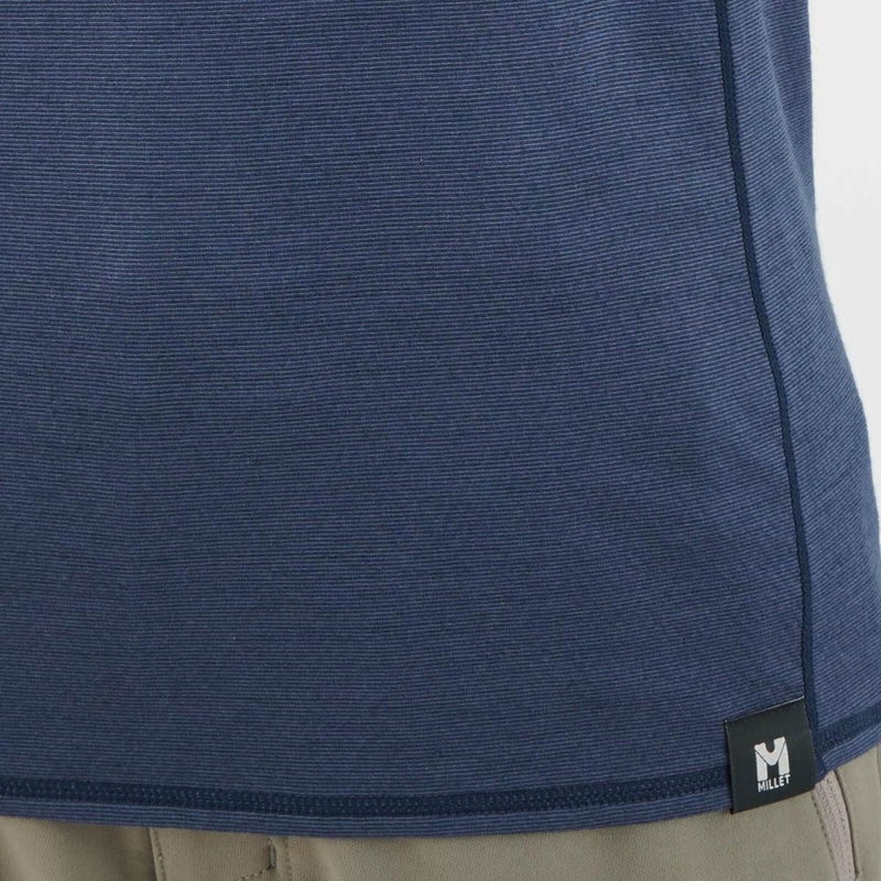 表面は吸湿性に優れたウール混、肌面は肌離れがよいリサイクルポリエステルという二重構造のハイブリッド・ロングスリーブシャツです。動きやすさを考えた裁断によって激しい上半身の動きも可能にします。カジュアルにも合わせやすいクルーネック、袖口にはより保温性の高めるサムループが付いています。