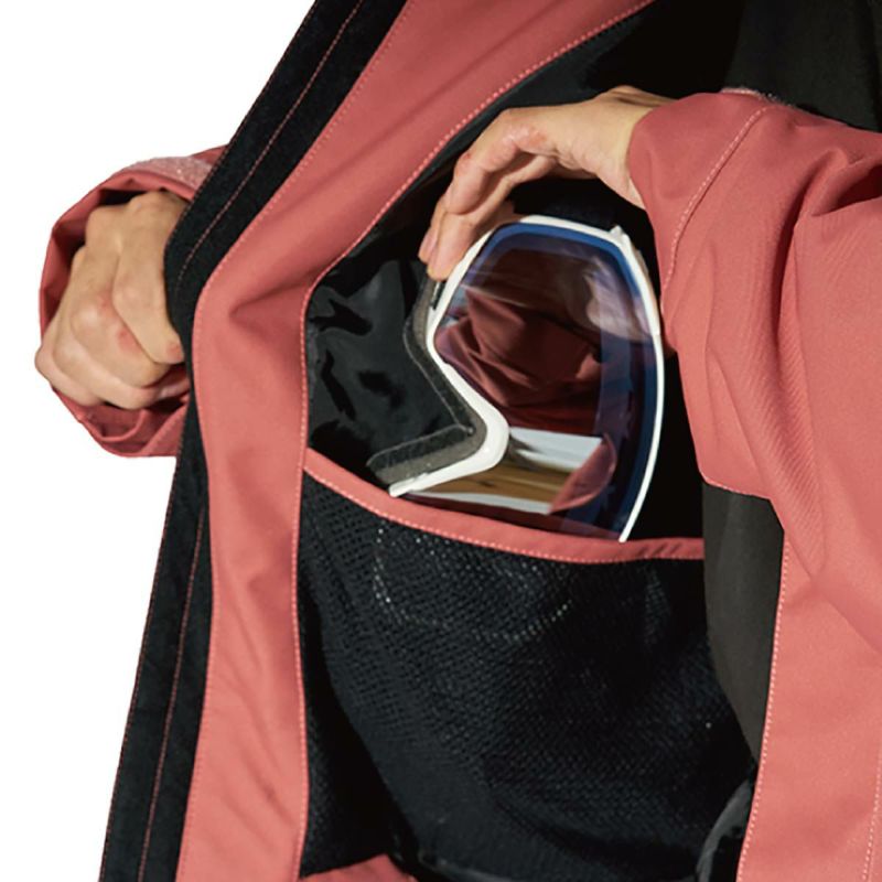 ・ゴーグルポケット:休憩時などゴーグルを使用しない際に収納出来るインナーポケット。熱による曇りを抑える為、メッシュ素材を使用。