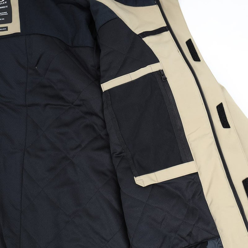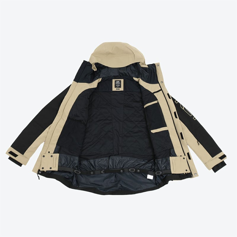 2LFN Dry(TM) 10K/10Kインサレーションジャケットは、FNDry(TM)メンブレンが提供する高い防水透湿性10,000mm/10,000g/m2/24h素材を採用。80gのボディ用、60gの袖とフード用インサレーションが高い保温性を確保。ヘルメット対応のフードは雪や風から顔を守ります。フロントファスナーにはストームフラップを装備し、雪や風の侵入を防ぎます。チェストポケットやファスナー付きハンドポケットなど、機能的なポケットを多数配置。左袖のRFIDリフトパスポケットや、ゴーグルやメディアの収納に便利な内ポケット。固定式の雪スカートは、パウダーでのアクティブな動きにも対応。ベルクロストラップで調節可能なカフスと、Lycraリストゲイターは袖口からの雪の侵入を防ぎ、フィット感を向上させます。フロントと袖、バックに配されたOakleyB1Bロゴがデザインアクセント。レギュラーフィットデザイン。