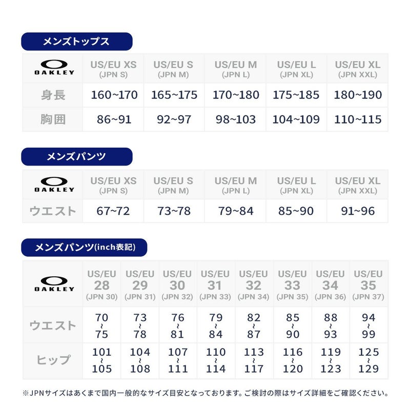 EU/US_XS、EU/US_S、EU/US_M、EU/US_L、EU/US_XL