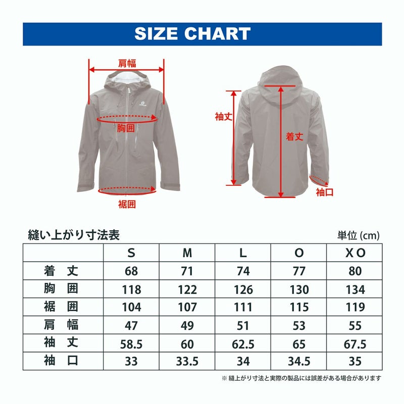 内側に中綿ジャケットやフリースなどを着重ねるレイヤリングを前提に、ウェア寸法はやや大きめに設計。