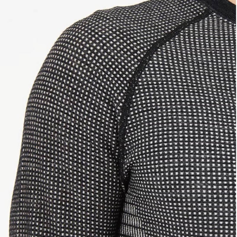 メリノウールの天然の快適性と、最先端の編立技術による優れた機能性を兼ね備えた、軽量で快適なベースレイヤー。高品質の極細メリノウールをふんだんに取り入れた軽くて暖かいワッフル素材を、縫い目のないコンピューター編みで仕上げ、肌へのストレスと通気性を考慮した立体的で柔らかい肌触りを実現しました。さらに、運動性の高いラグランスリーブ、脇腹部分は通気性と横方向の伸縮性を、身頃や肩・袖は絶妙なフィット感を提供するよう計算された編み方にすることで幅広いシーンやアクティビティにおける本当の快適さを細部まで突き詰めています。秋から春先まで長く活躍できるクルーネックタイプ。