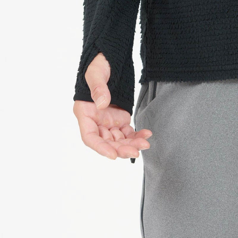 ・防寒とずり上がり防止に役立つサムホール仕様の袖