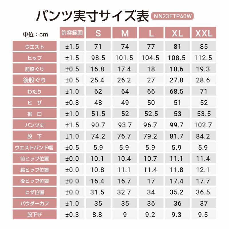 ・裾丈調節機能(膝裏から裾口までの丈をゴムで引っ張り短くする機能)(〔1〕COWT〔2〕IW〔3〕MAPL〔4〕NV)