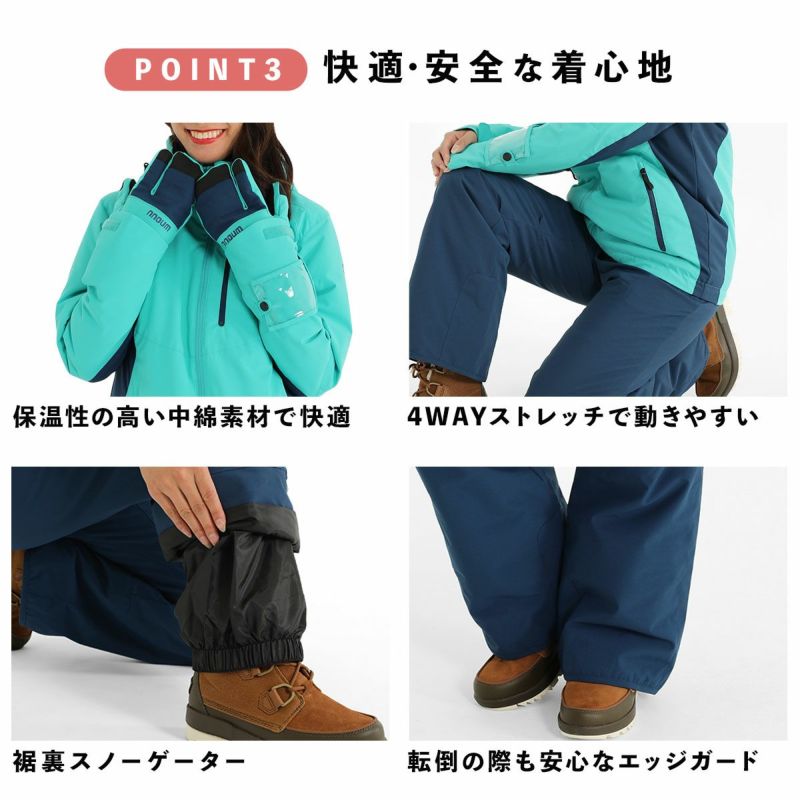 スノーウェア 女性用 スノボ スノーボード 大きい 小さい サイズ NN22FTP40W / NN23AFTP40W スキーウエア レディース スキー ウェア セット スキーウェア レディース 上下セット ハイブランドと同工場で安心の品質 耐水圧10,000ml NNOUM ノアム 動きやすさNo.1 軽量 防寒 保温 NN22FTP40W / NN23AFTP40W フード付き ストレッチ 選べるカラバリ スノボ スノーボード〔SA〕 スーパーセール