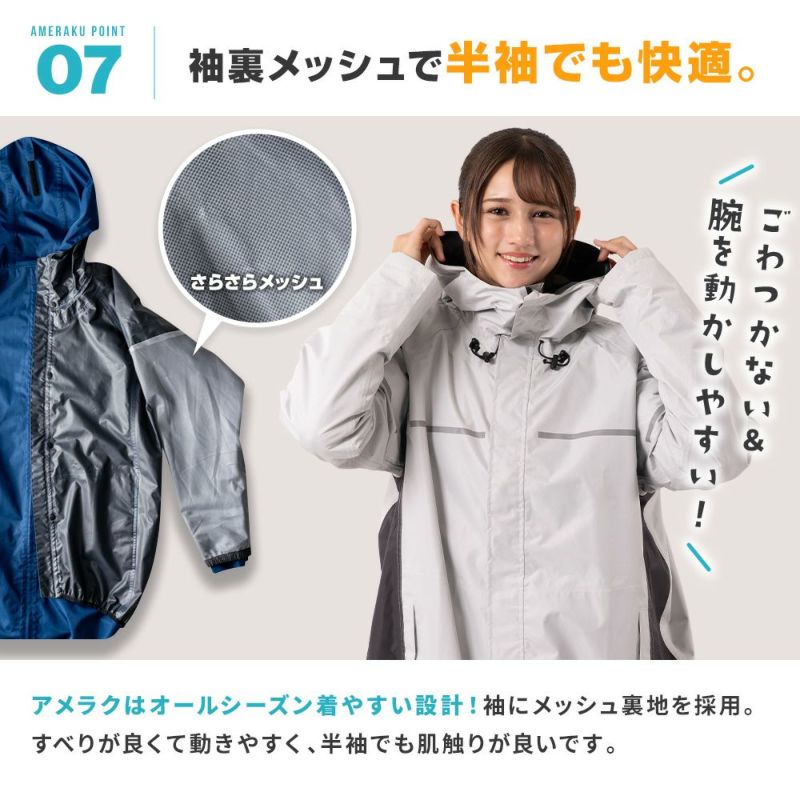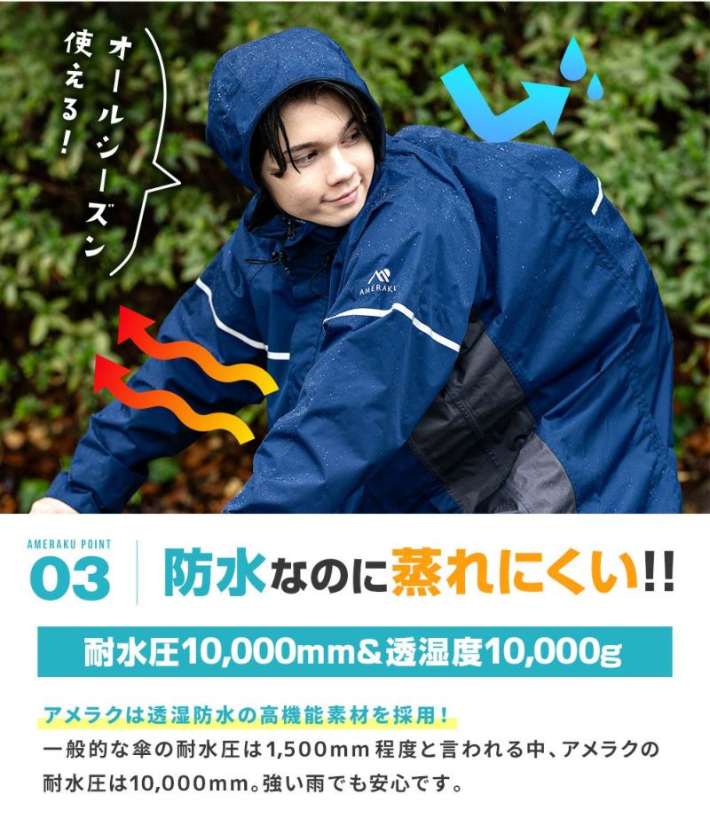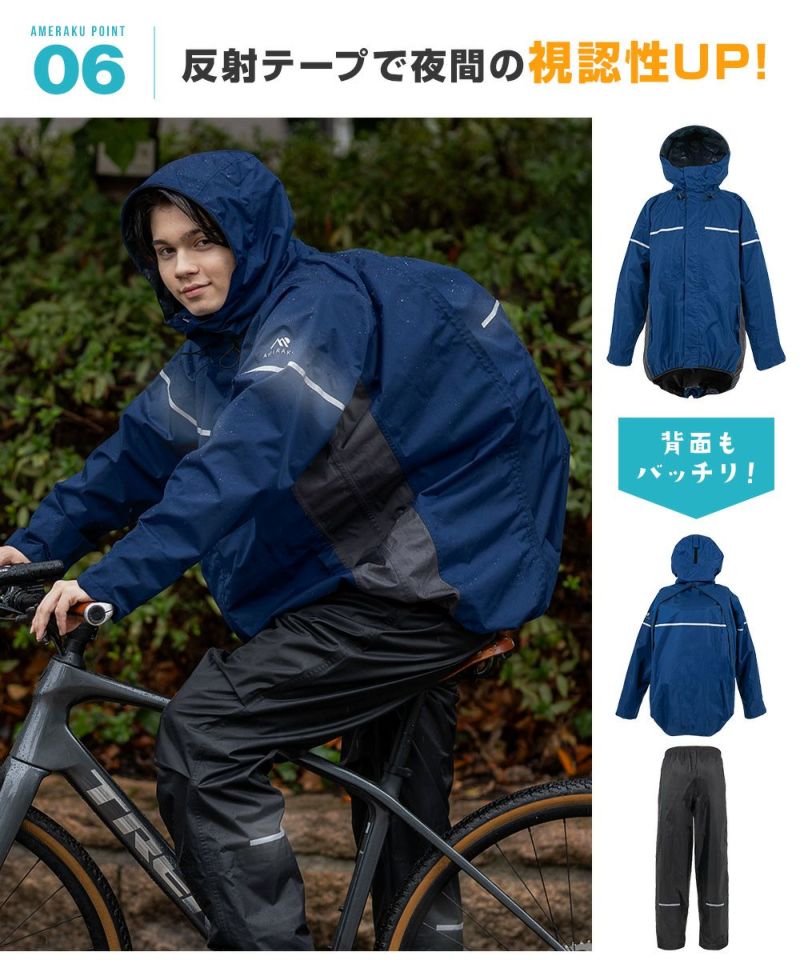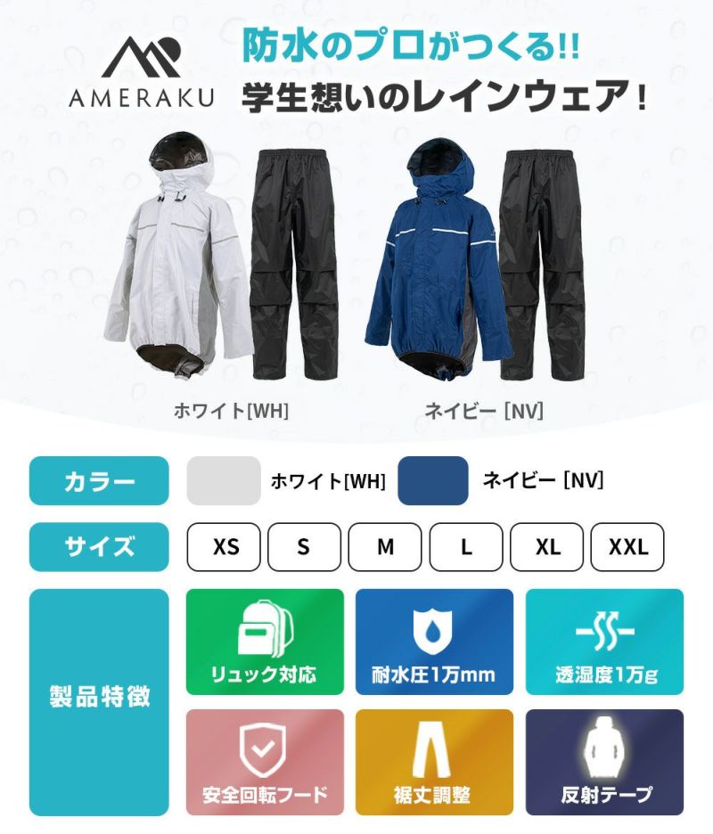防水&ストレッチ&透湿性抜群で快適なレインウェア上下セット! レインウェア 通学 学生 サイズ調整 上下セット カッパ メンズ レディース レインコート プロも納得のレインスーツ 自転車 ゴルフ 透湿 防水 ストレッチ レインパンツ・ジャケット 雨合羽 雨具 AMEraku アメラク NN26NSRA10