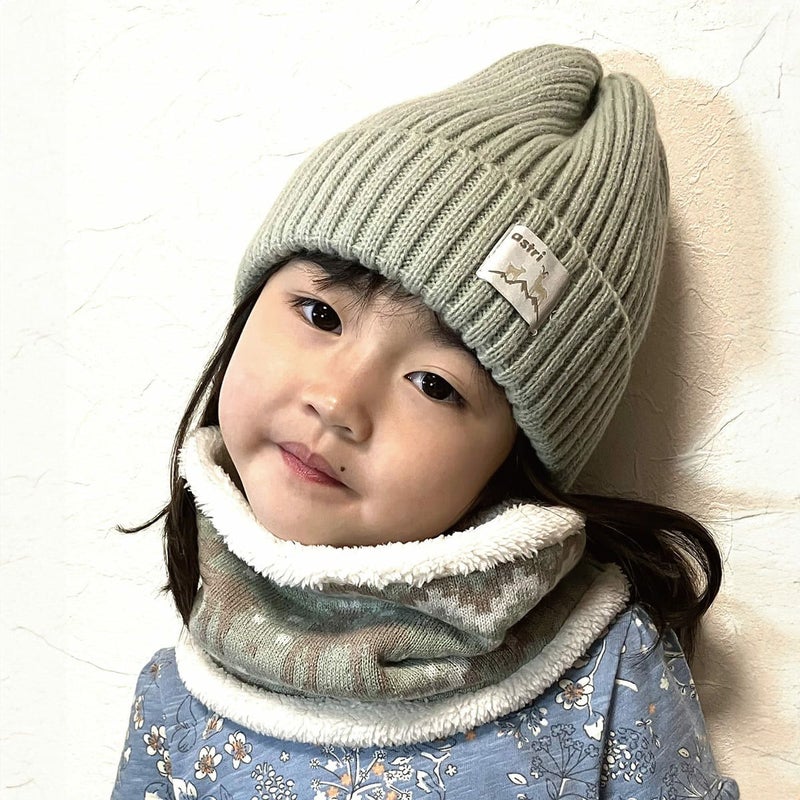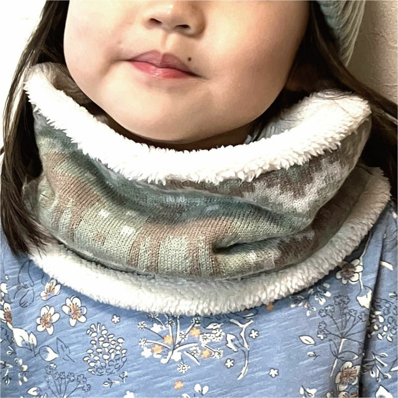 帽子とお揃いでお洒落に使えます。柔らかいアクリル糸をジャガード織りにしてふかふかなフリースを内側につけた暖かく・軽く・柔らかいジャガードニットのネックウォーマー形は頭からすぽっとかぶるシンプルな定番にしました。アクティブな子供たちにはマフラーは危険な場面もあるので、やっぱりかぶるタイプのネックウォーマーが安心です。帽子とお揃いで使っていただけるとお洒落で可愛らしいウィンタースタイルの出来上がりです。