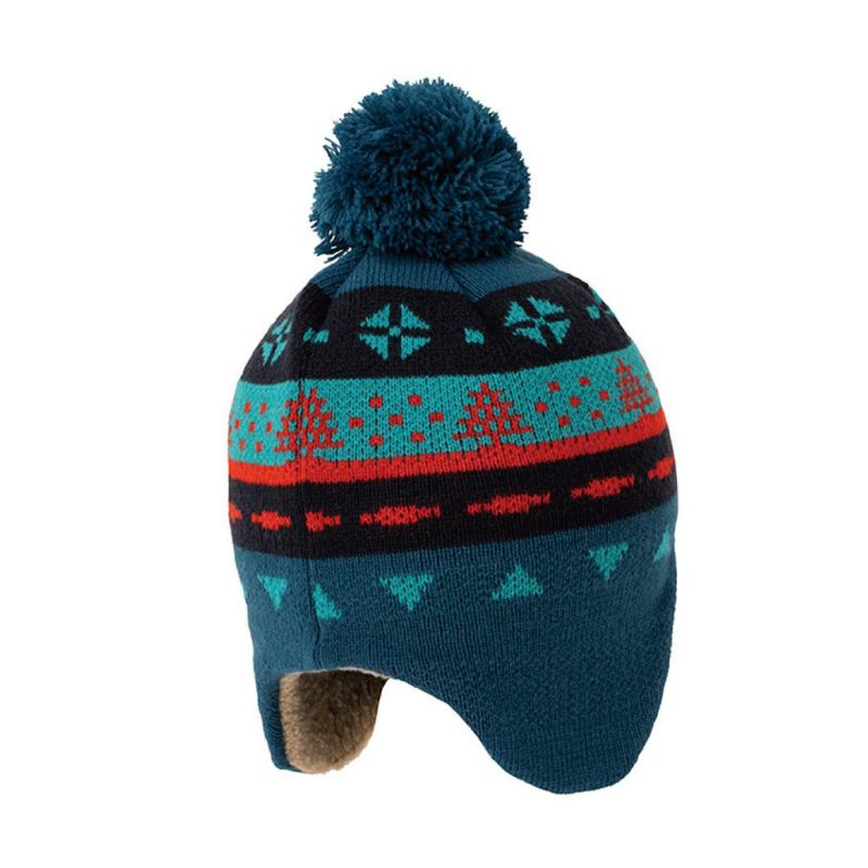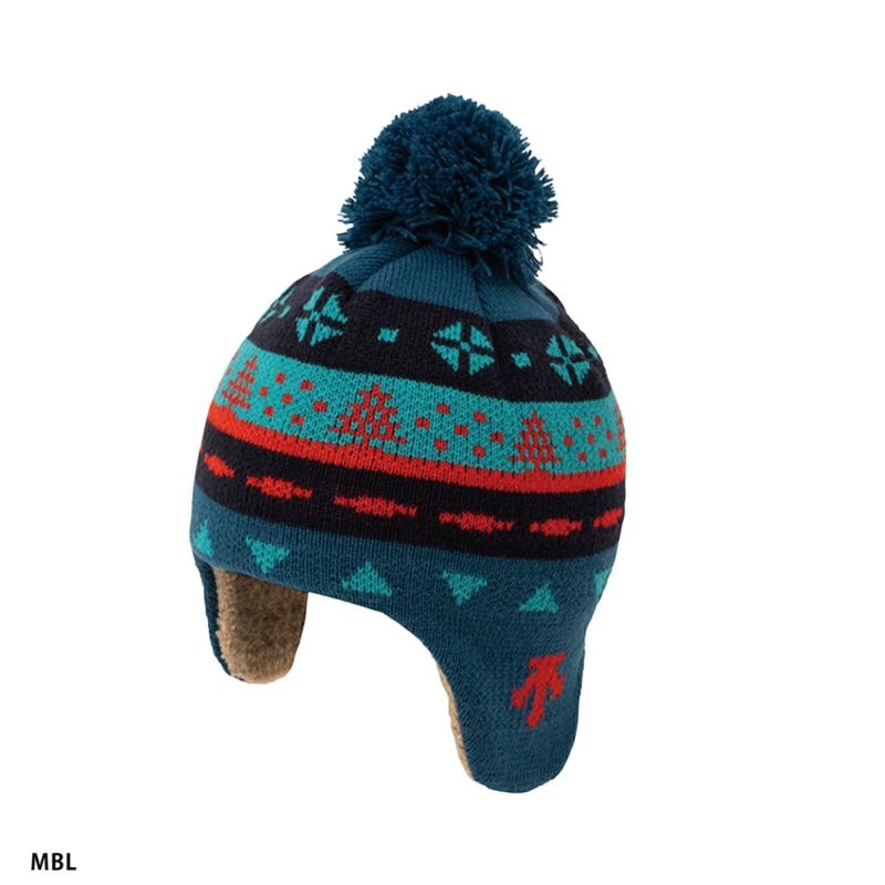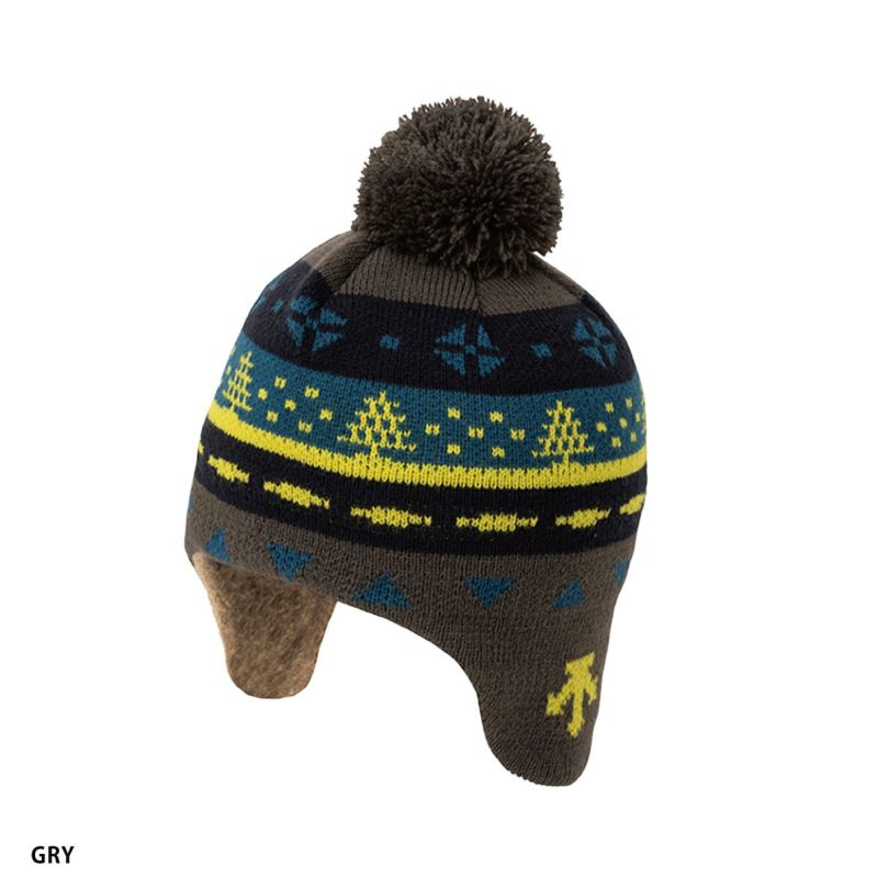 裏地の額から耳当て部までは起毛ニットを採用しており耳元を温かくガードします。裏地上部は吸汗速乾・抗菌防臭糸を 採用。ポンポン付きのノルディック柄ジャカードデザイン。
