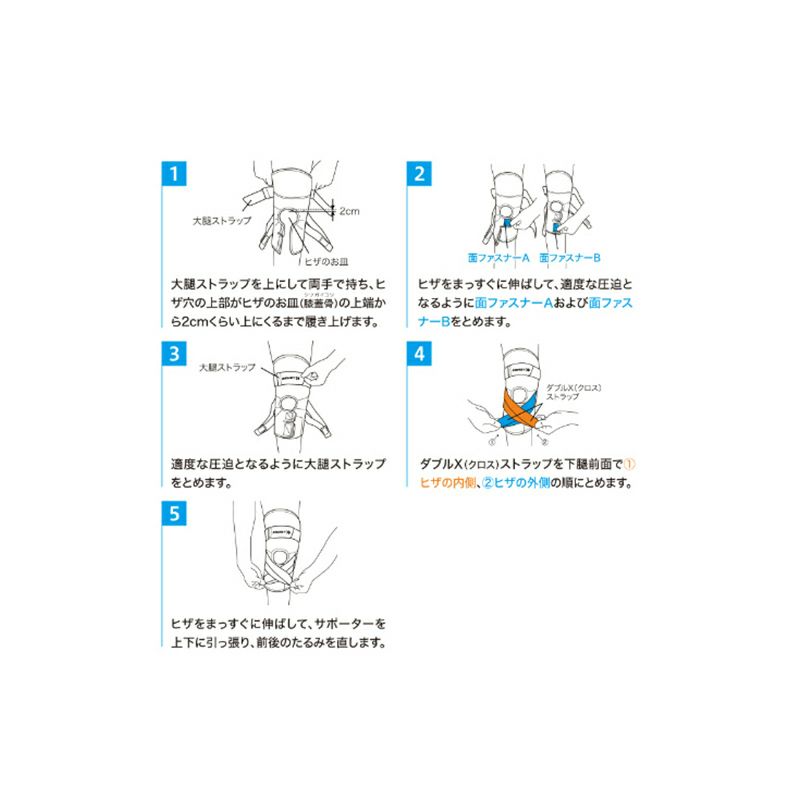 本体の前下部とヒザ裏上部に装備したダブルXストラップが大腿部と下腿部を効果的に圧迫。またファンクショナルステーとの連動により下腿部の前方へのグラつきとねじれをしっかり抑制します。