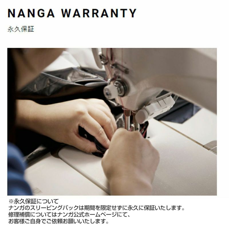 ナンガのスリーピングバックは期間を限定せずに永久に保証いたします。