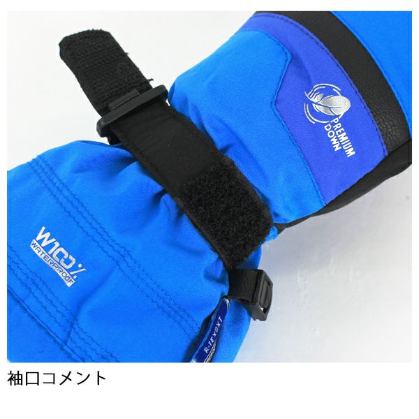 リアルダウンを使用しとても暖かく、柔らかいソフトシェル素材が快適な防水シート入りキッズミトングローブ。リーシュコード付きのパウダーカフスタイル。