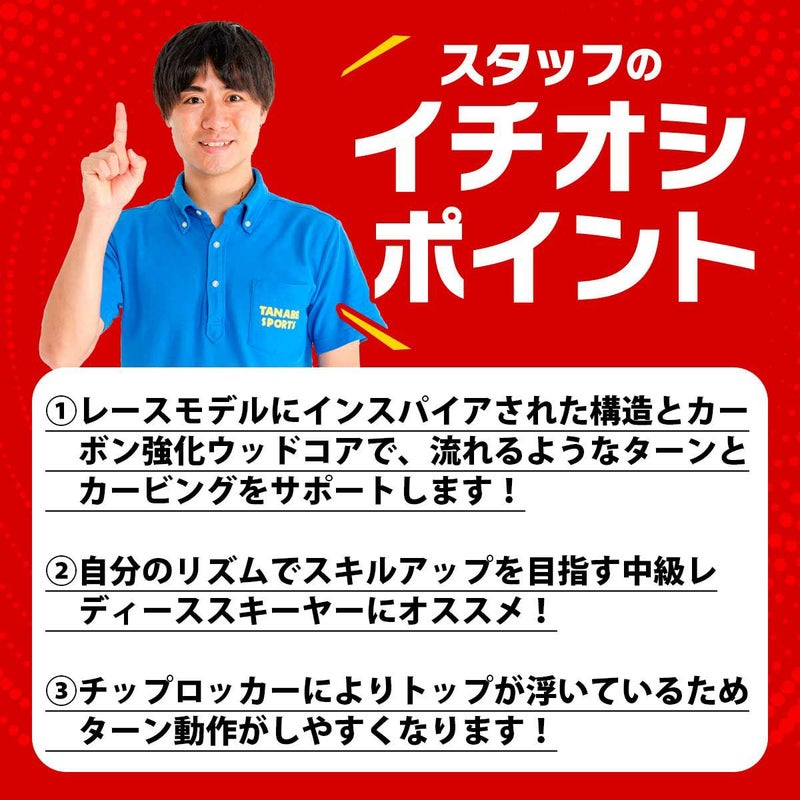 中級スキーヤー向け。安定したパフォーマンスを発揮し、より細かいスキー操作が可能