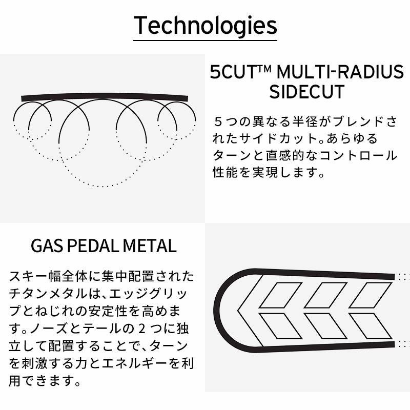 山での滑り方を変えさせてくれる、そんなスキーです。 Gas Pedal Metal?により、どんなコンディションにも屈することなく、超タイトなサイドカットが小刻みなターンにも対応します。 これに遊び心を加えれば、人とは違った、風変わりな滑りに導いてくれるでしょう。 まさに、#morefunnerというタグが似合う投稿がしたくなる一台です。