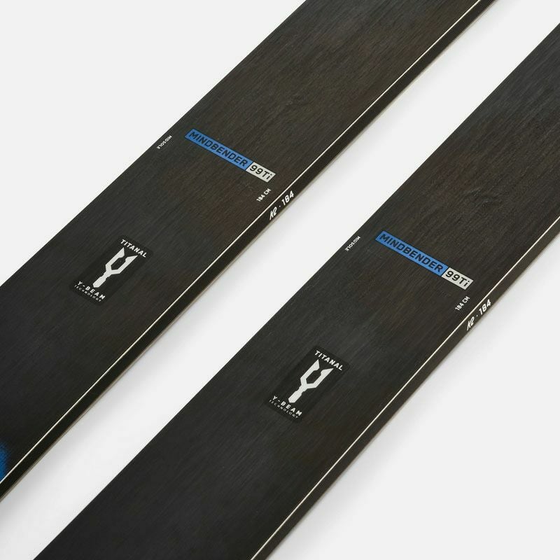 マインドベンダー99Tiは、クイックなターン半径と99mmウェストによる浮きやすい浮力を併せ持つ。先端の緩やかな立ち上がりはあらゆるコンディションで多用途性を生み出し、低めのテールは変わりやすい雪質でもコントロール性を発揮する。このフリーライドスキーは、山中で自信に満ちたライディングをするのに最適なモデルだ。