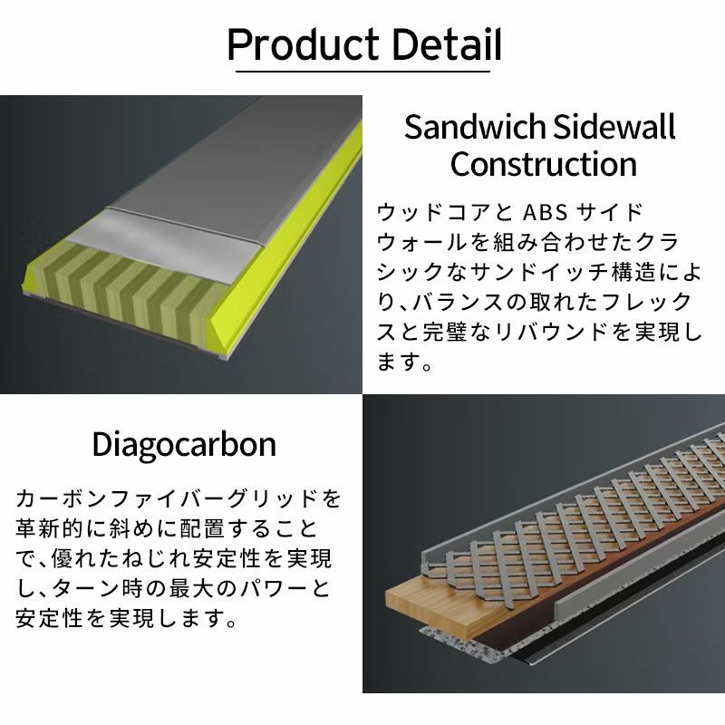 ・Giant Slalom specific design optimized for big turns