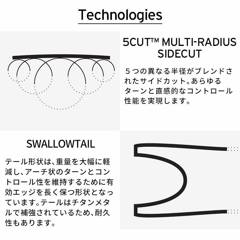 海外メディアで高評価を得て、数々の賞に選ばれたモデル。他に類を見ない多目的オールマウンテンスキー。 ユニークなスワローテイルでありつつ、しっかりとしたキャンバー形状により、硬い雪の上でもしっかりとしたカービングターンが可能です。 一方で、アーリーライズチップ、バックマウントスタンス、ワイドショベルにより、パウダーをサーフィン感覚で楽しむことができます。