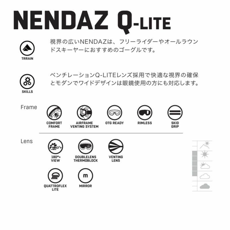 視界の広いNENDA Zは、フリーライダーやオールラウンドスキーヤーにおすすめのゴーグルです。