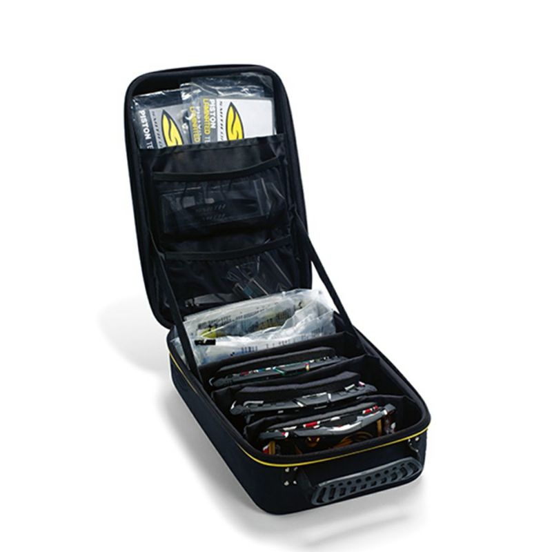 5個のゴーグル、たくさんの替えレンズを収納可能。ふたの内側にポケット付き。