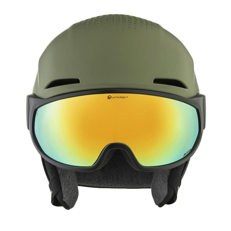 Style, aesthetic, innovation. The Alto Q-Lite is a visor helmet for skiers who like to look good and be able to see everything. The newly designed and perfectly visor translation rotation Mechanism (TRM) sets new standards in terms of comfort. Thanks to TRM, the visor seals extra tightly to the face, thus helping the helmet to sit compactly and comfortably on the head. The ALPINA high-tech lenses ensure optimal visibility and sharp contrast. The Alto’s active air venting structure guarantees active ventilation. At the same time, the clean play of surfaces in combination with the scattered hole structure of the ventilation creates an iconic look.