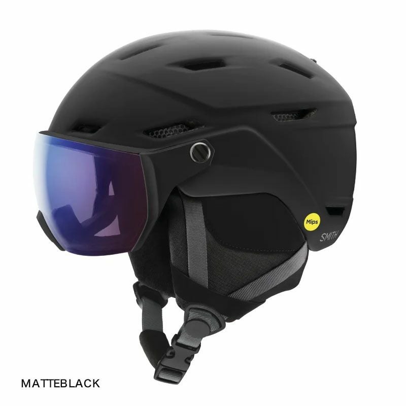バイザーヘルメットが登場。バイザー部分にはクロマポップレンズを採用、クリアで歪 みが無く、素晴らしいコントラストを再現する。コロイドとMIPS を搭載した軽量かつ耐 久性が高いインモールド・コンストラクション。AirEvac 構造とベンチレーションシス テムがエアフローをコントロールする。SMITH が誇るクロマポップレンズをバイザー 越しに体感せよ。フレームレス、ノンストレス、視界良好。もちろんバイザーはメガネ ユーザーにも対応。