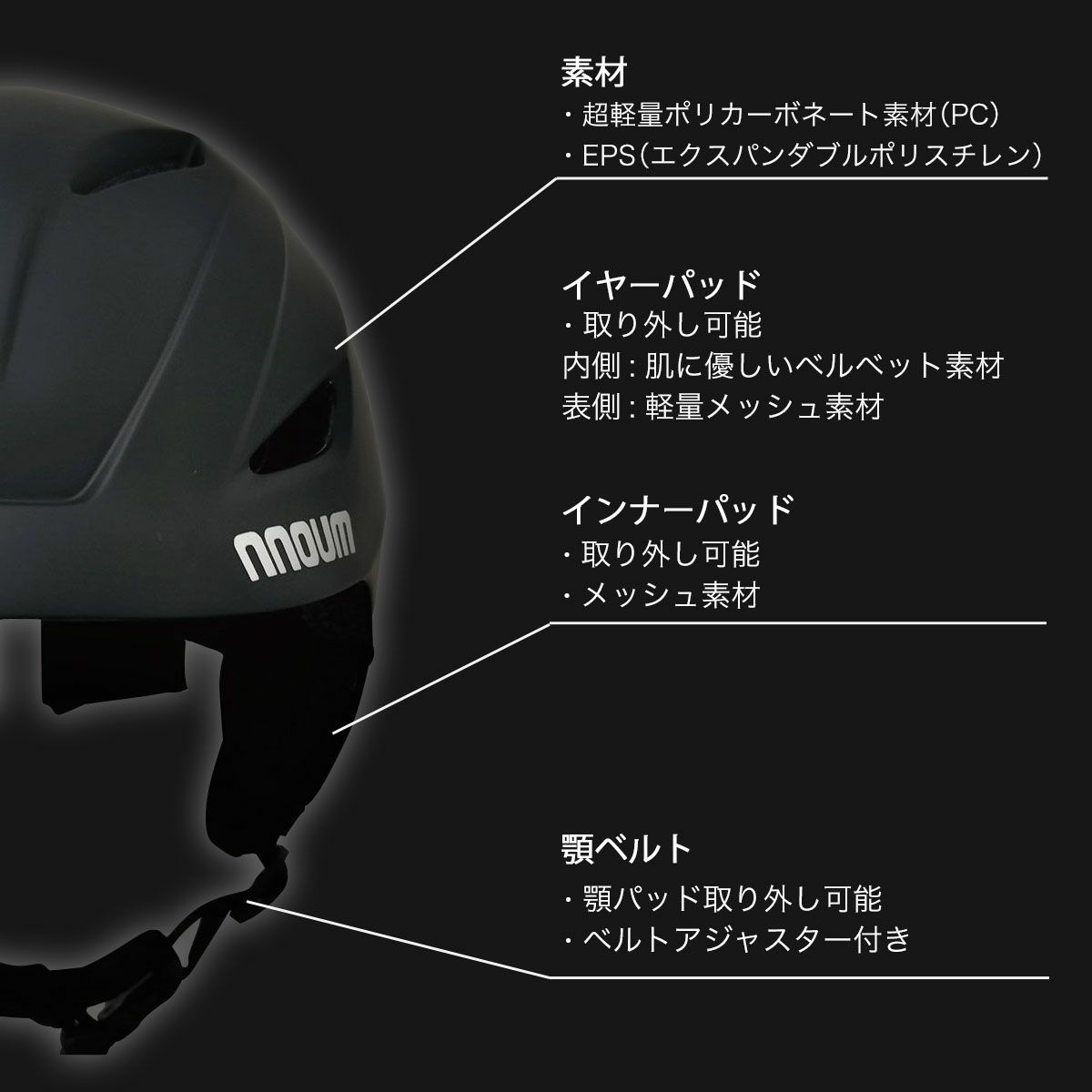 スキーヘルメット NN22DFHM01M ブラック グレー スキー ヘルメット メンズ レディース 軽量 サイズ調整 NNOUM ノアム NN22DFHM01M / nnoum ヘルメットケース付き