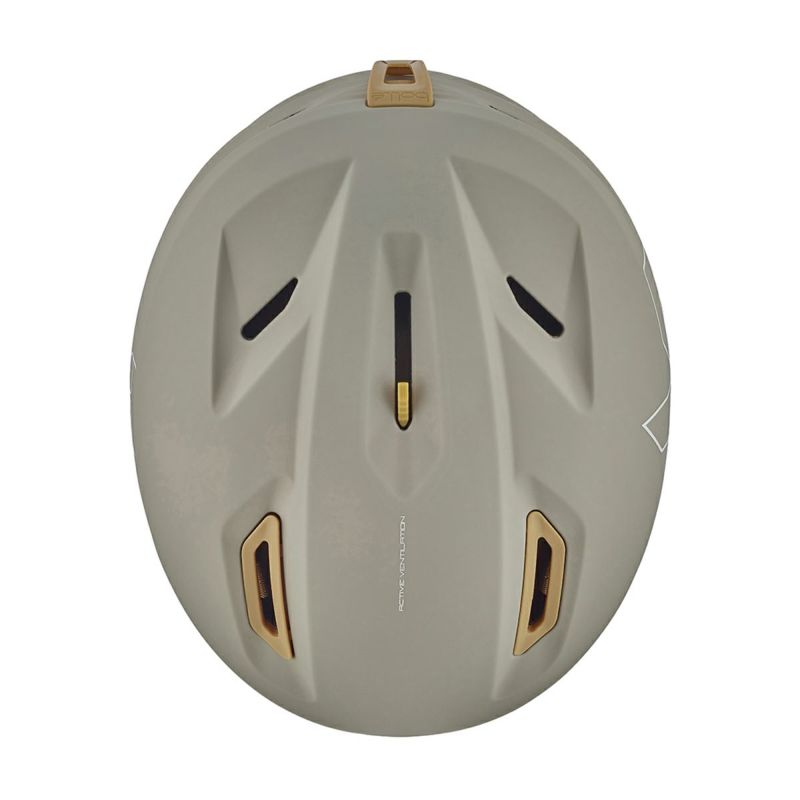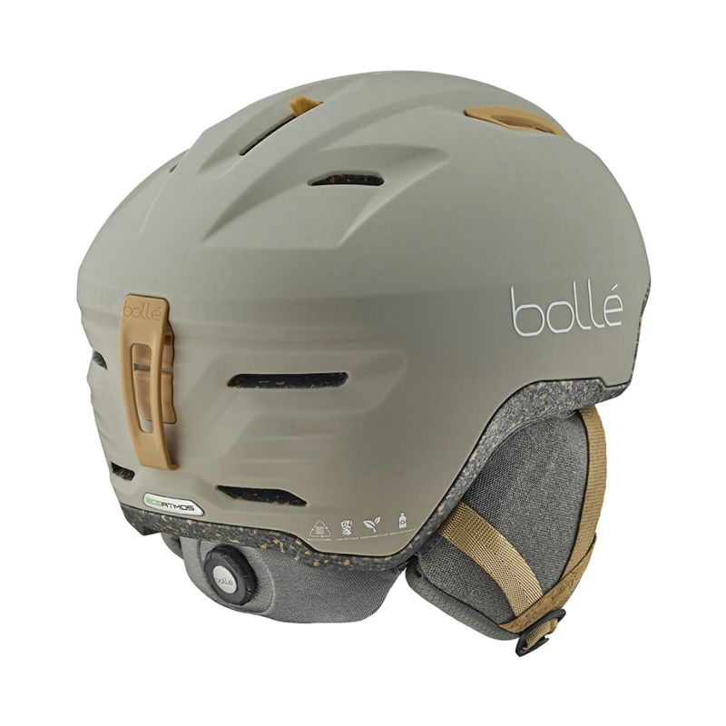 ECO ATMOSの第一の特徴は、インモールド構造による軽さと快適さです。ライクラライニング、ストラップ、ディバイダ―、シェル、イヤーパッドなど、すべてエコ素材を使用したデザインで、リサイクル素材やバイオ素材を部分的に使用し、EPSにコルクを混ぜています。これは、熱心なスキーヤーのためのSDGsなBolle初のスキーヘルメットです。また、8つの通気孔を持つアクティブベンチレーションシステムにより、通気性に優れています。