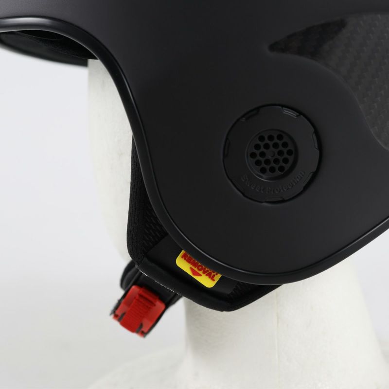 シェルはプリプレグカーボンファイバーとポリアミドファイバーのハイブリッド構造を採用、伸縮性と剛性の最適な組み合わせを実現してい ます。衝撃吸収構造には、最高峰の衝撃吸収技術であるインパクトシールドに、転倒時の衝撃から頭部を保護するためにフロントとリアにゲ ートシールドが追加成型されています。緊急時の脱着が一瞬で可能なイヤーパッドと、着用時でも音が聞こえるイヤーポートも装備されてい ます。工具を使わずに数秒で安全に脱着ができる別売のスラローム・チンガードが装着可能です。脳損傷を回転によって軽減する MIPS シス テムには、ヴォラータ用に新たに開発された3層構造のMIPSシステムが搭載されています。