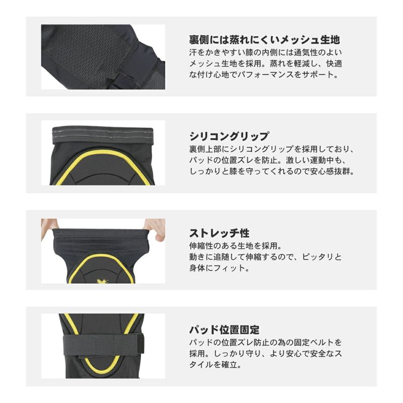 ・通気性に優れたメッシュ素材を肘内側、膝裏に使用。