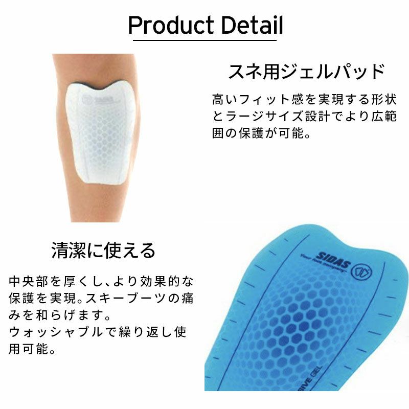 高いフィット感を実現する形状とラージサイズ設計でより広範囲の保護が可能です。 中央部を厚くし、より効果的な保護を実現し、スキーブーツの痛みを和らげます。 ウォッシャブルで繰り返し使用可能です。