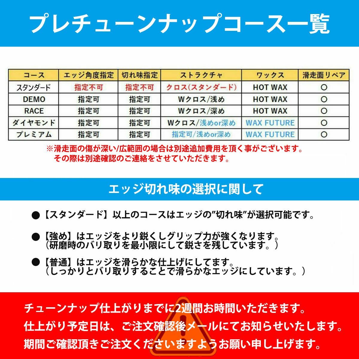 ※その他のコースはスノーボードのへの加工は出来ません。