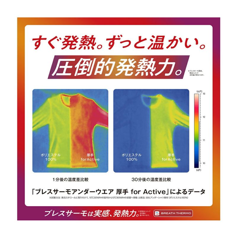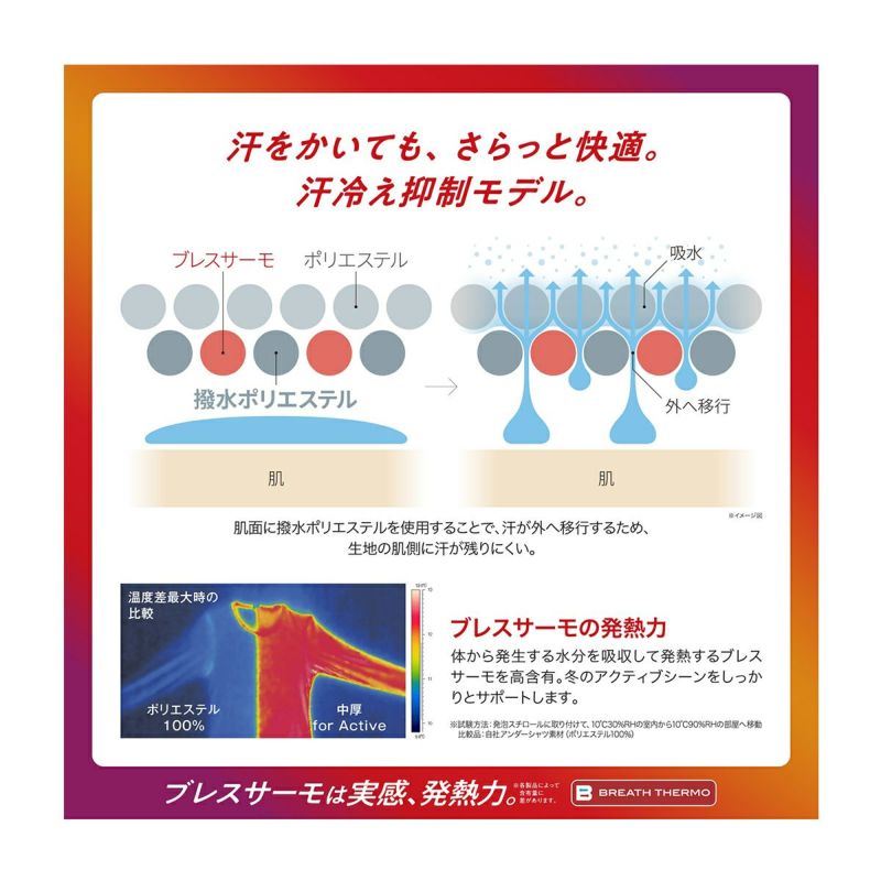 ■BREATH THEROMO:体からの水分を吸収、その吸着熱を利用して温度を上昇させる発熱素材。