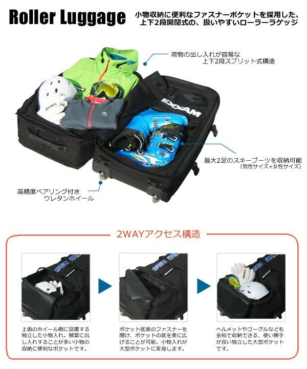 上下2段開閉式の、扱いやすいローラーバッグ