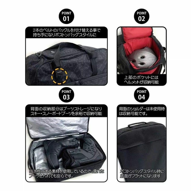 スノーギアをまとめて収納!背負えるタイプの収納ケース。