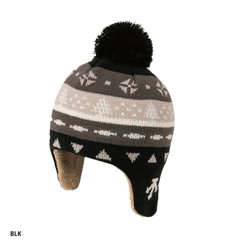 裏地の額から耳当て部までは起毛ニットを採用しており耳元を温かくガードします。裏地上部は吸汗速乾・抗菌防臭糸を 採用。ポンポン付きのノルディック柄ジャカードデザイン。