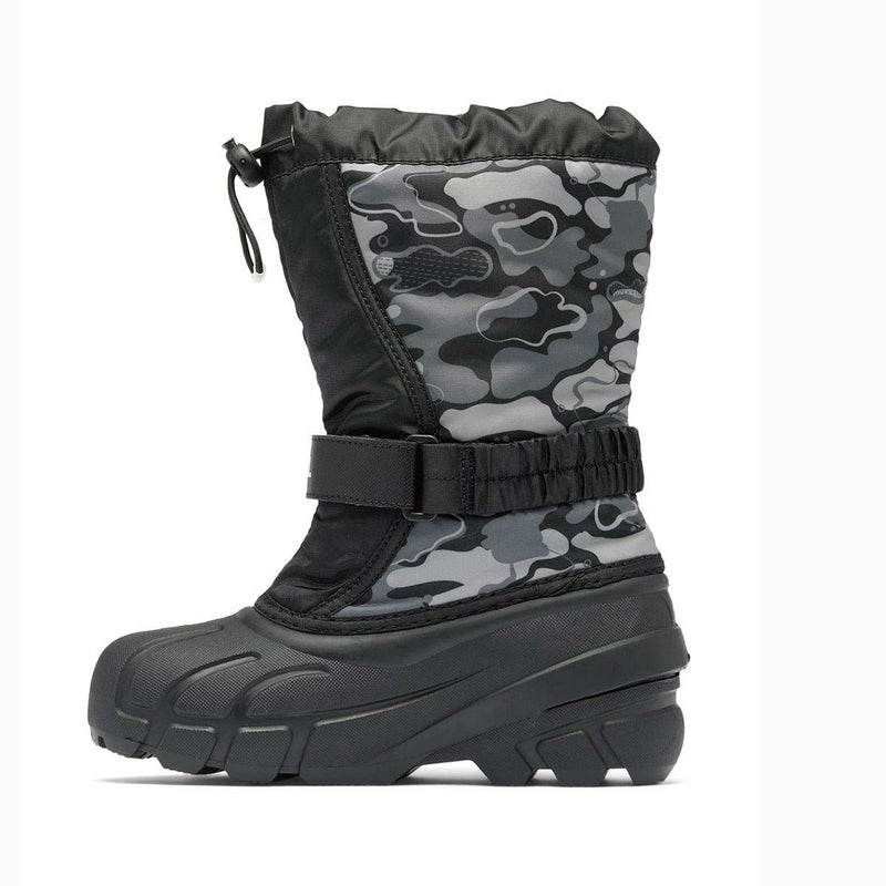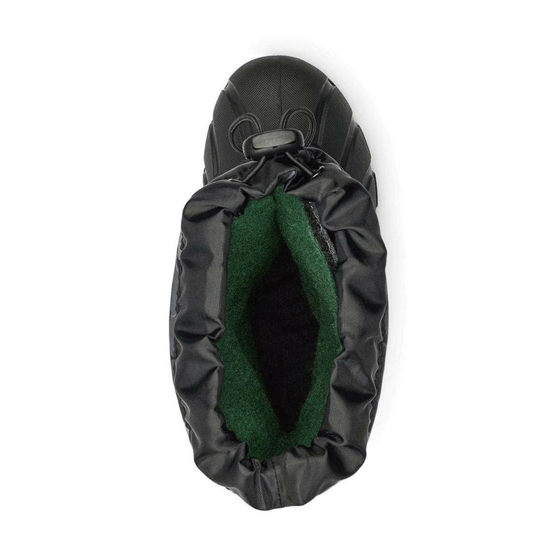 はっ水性に優れた防水ブーツ。アッパーは耐久性・防風性のあるはっ水加工を施したナイロン素材を採用。甲の部分には伸縮性のあるストラップを備え、フィット感を高めています。2.5mmの圧縮フェルトフロストプラグと着脱可能な6mm厚のリサイクルフェルトインナーブーツが足元からの冷気をブロックしつつシューズ内の空気を温め、寒さから子どもの足を守ります。足入れがスムーズな太めの筒デザインに、グローブを着けたままでもフィット感の調整が可能なベルトや履き口のドローコードを備えています。柄が入っていないモデル(NY1965)もラインナップしています。