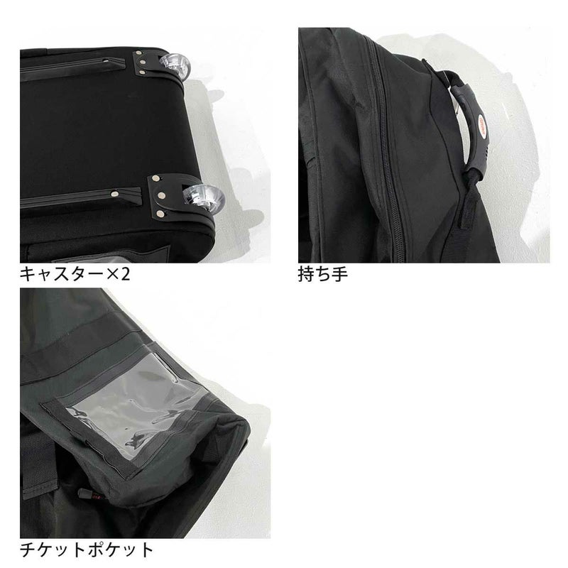 2人分の荷物が楽に入る。いっぱい入る分重く、ショルダーベルトもないので、2人がかりで前と後ろの取っ手を持って持ち運ぶのが推奨。
