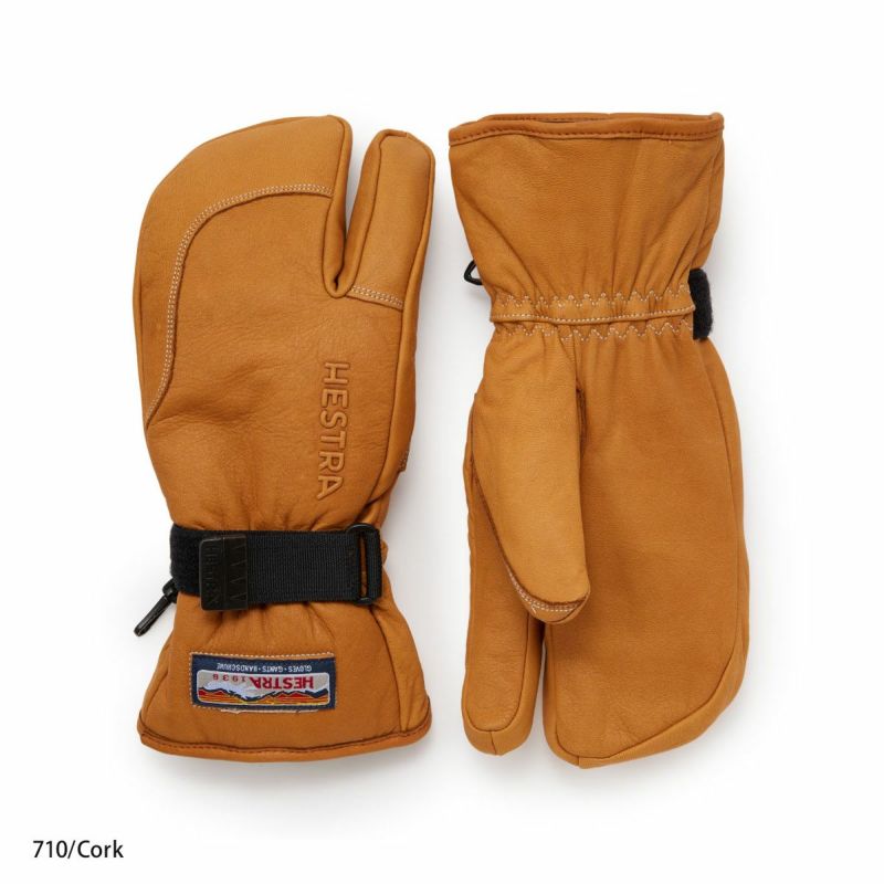 5本指グローブの操作感とミトンの保温力を兼ね備えた3フィンガーモデルは、厳冬期の雪山ライドになくてはならない存在。極寒の大雪山旭岳や吹雪の八甲田でも指先の冷えに悩まされることなく快適なライディングを約束します。ミトン形状ながら独立した人差し指によってスキーポールを難なく操作でき、中指から小指までの3本はそれぞれ独立したライニング仕様のため、高い保温力を維持しながらしっかりフィットします。HESTRAのフルレザー3フィンガーには使い勝手に応じて3タイプがあり、この「フルレザー」は安心感の高いレギュラーカフモデル。ウエアの袖口ごと包み込むように装着し、ベルクロ留めのコンプレッションを締めれば、雪や冷気の侵入を完全にシャットアウトします。素材は外側はやわらかな牛皮革、手のひら側はカラーによって強度の高いゴート(山羊)皮革と、しなやかな牛皮革があります。ポリエステルライナーは取り外しが可能です。
