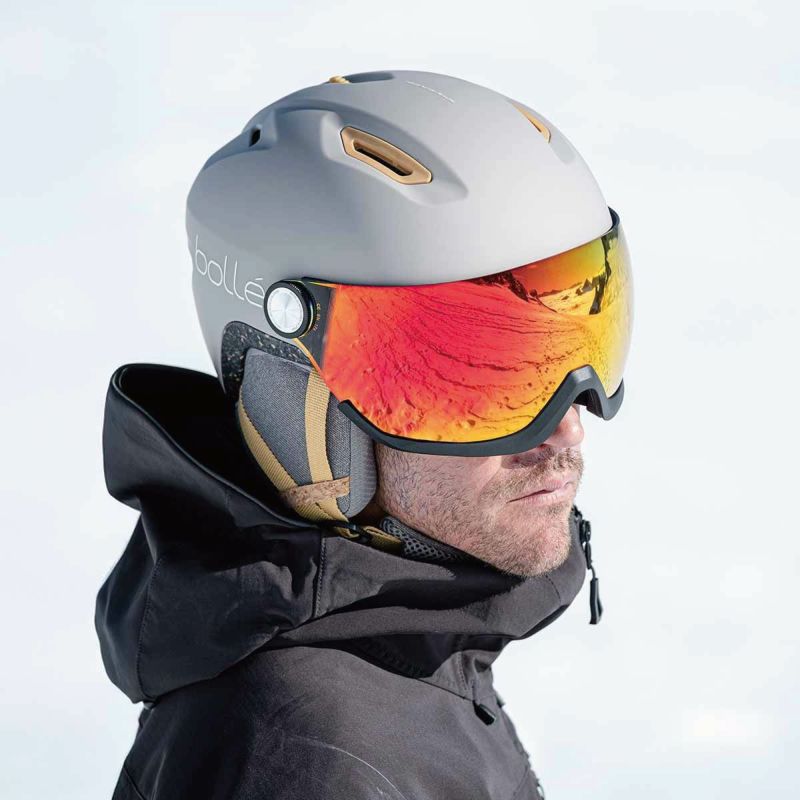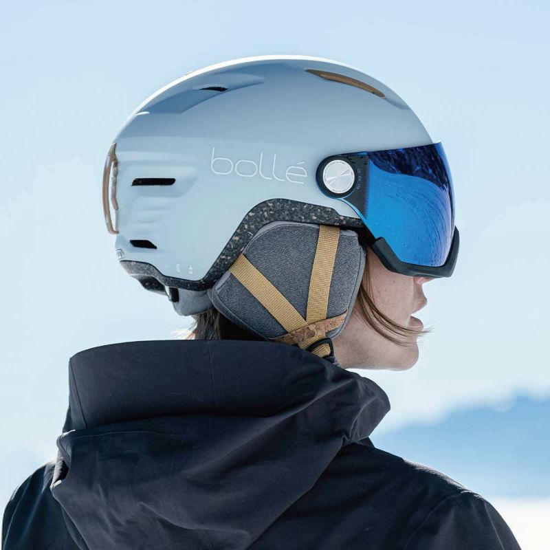 ATMOSに、100%リサイクルの調光バイザーが付属し、Bolle初のエコデザイン・バイザー・ヘルメットとなりました。地球環境に配慮する熱心なスキーヤーのために、ストラップ、ディバイダーー、フィットシステム、ゴーグルリテーナー、パッド、イヤーパッドの全てに、リサイクル素材やバイオベース素材、EPSと混含されたコルクが部分的に使用されています。V-ATMOSは、インモールド構造により軽量かつ快適で、8つの通気孔を持つアクティブベンチレーションシステムを採用し、優れた通気性を保証します。