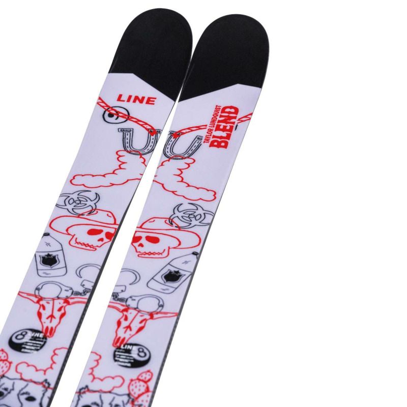 Taylor Lunquist’s pro model ski, the LINE Blend TBL. Inspired by Taylor’s unique style, grit, and determination to change the game forever, the Blend TBL represents the go-to ski for innovation, style, and creativity in the park and the streets. Available in a full-size run, the Blend TBL is just like its counterpart down to the 98mm waist width and reinforced chassis, with a graphic inspired by Taylor.