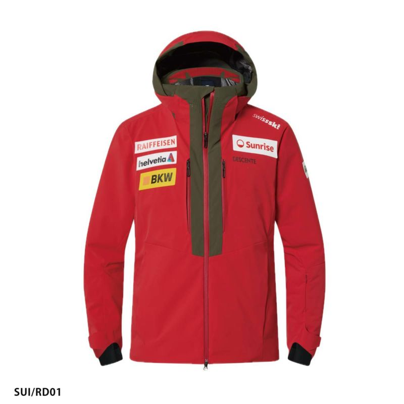 スイス・チーム・サプライ・モデルのインサレーテッド・ジャケット。スイスチームスポンサーロゴ入りのレプリカと、チームロゴなしのカラーバリエーション。デサント独自のS.I.O.パターン・エンジニアリングとBREATHING SYSTEMを採用し、動きやすさと快適性を追求したハイパフォーマンスモデル。